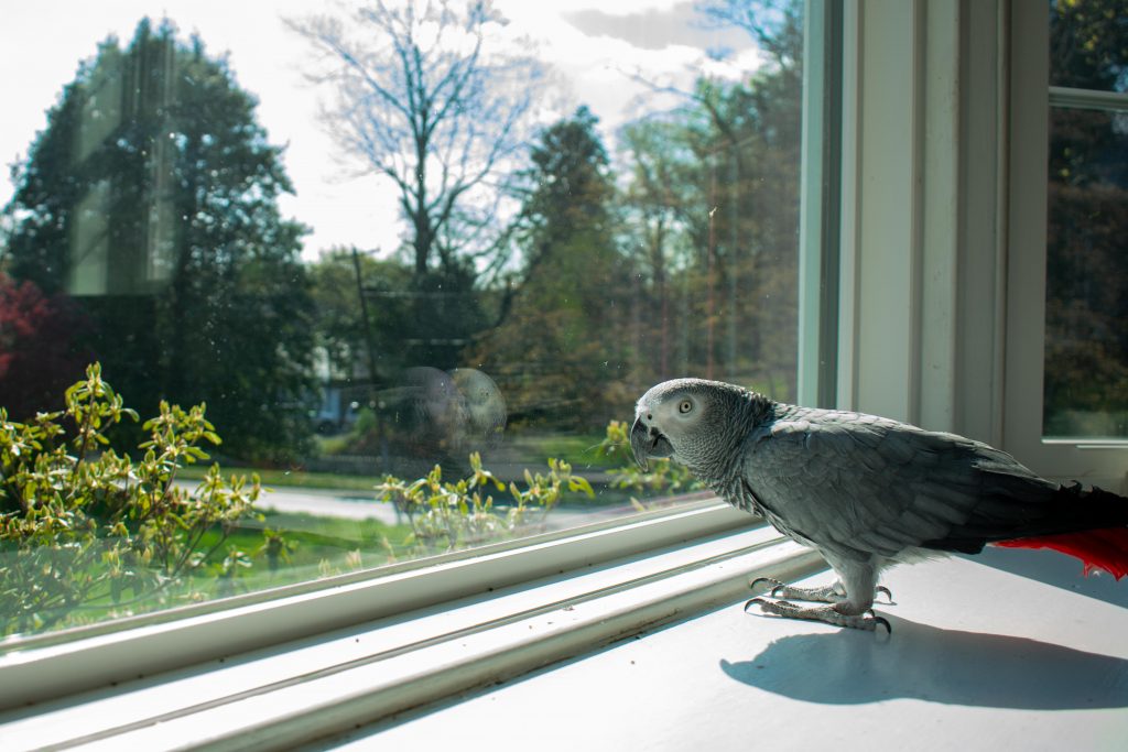 Latem ucieczki papug z domów zdarzają się bardzo często. Dostanie się do szpary w uchylonym oknie nie stanowi dla nich problemu, dlatego okna w pomieszczeniu z ptakami powinny być zabezpieczone. Nawet jeśli pilnujemy, by nie otwierać okien przy papugach, warto zamontować w nich przynajmniej moskitierę. Nie pozwoli ona bezpiecznie wypuszczać papug przy otwartym oknie, ale pomoże zapobiegać przypadkowym ucieczkom, na przykład jeśli okno nie będzie domknięte.